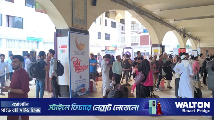 ট্রেন প্ল্যাটফরমে ভিড়তেই ট্রেনে ওঠার জন্য যাত্রীদের শুরু হয় দৌড়ঝাপ— কার আগে কে উঠবেন। কোচের সিট পূর্ণ হয়ে যায় মুহূর্তেই। ভেতরে দাঁড়ানোর জায়গাও নেই। ঠেলাঠেলি করে অনেক যাত্রী ওঠেন ছাদে। একপর্যায়ে পুরো ট্রেনের ছাদ যাত্রীতে ভরে যায়।