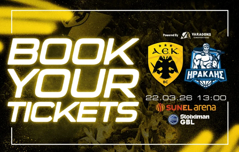 Η ΚΑΕ ΑΕΚ ενημέρωσε πως τέθηκαν σε κυκλοφορία τα εισιτήρια για την αναμέτρηση με τον Ηρακλή για την 22η αγωνιστική της Stoiximan GBL.