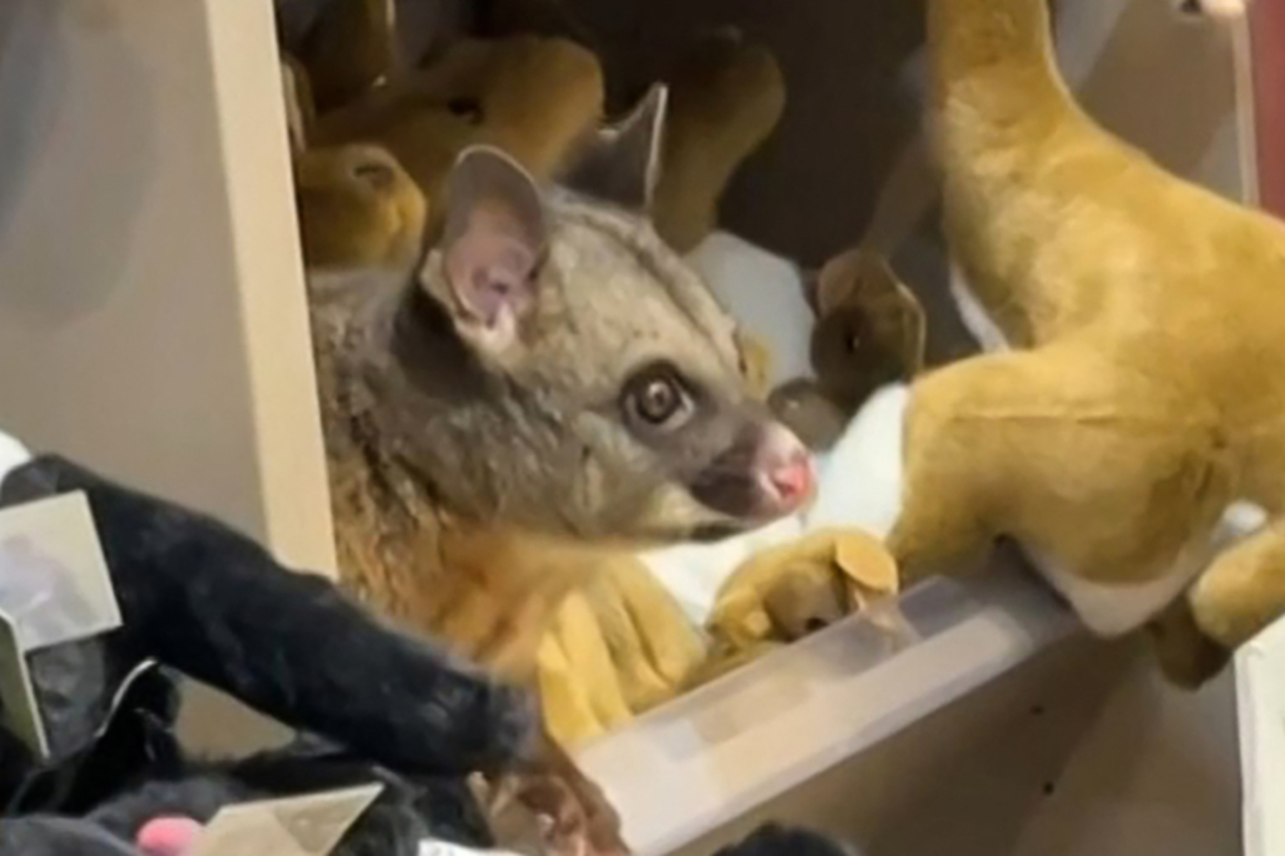 Zwischen kuscheligen Kängurus, Koalas und Dingos entdeckte ein überraschter Passagier das Beuteltier, das sich fast nahtlos in die Reihe der Souvenirartikel einfügte.