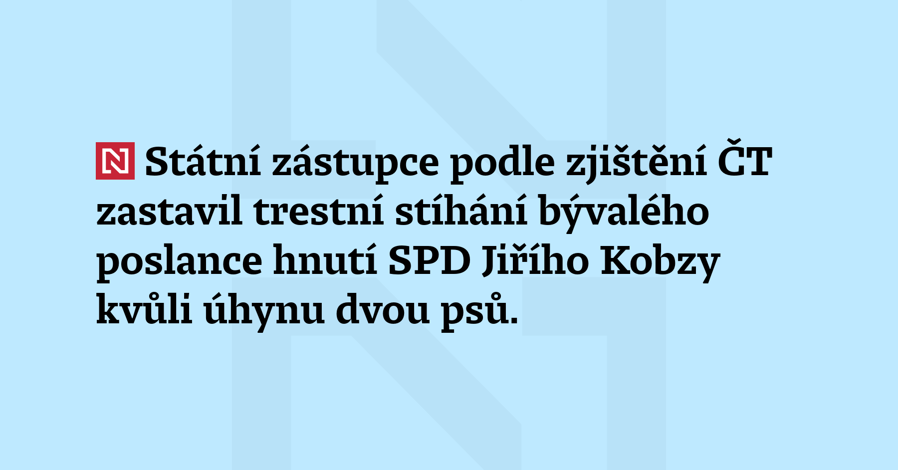 Státní zástupce podle zjištění ČT zastavil trestní stíhání bývalého poslance hnutí SPD Jiřího Kobzy kvůli úhynu dvou psů. Psy nechal Kobza v zavřeném rodinném automobilu, kde nepřežili. (ČT24)