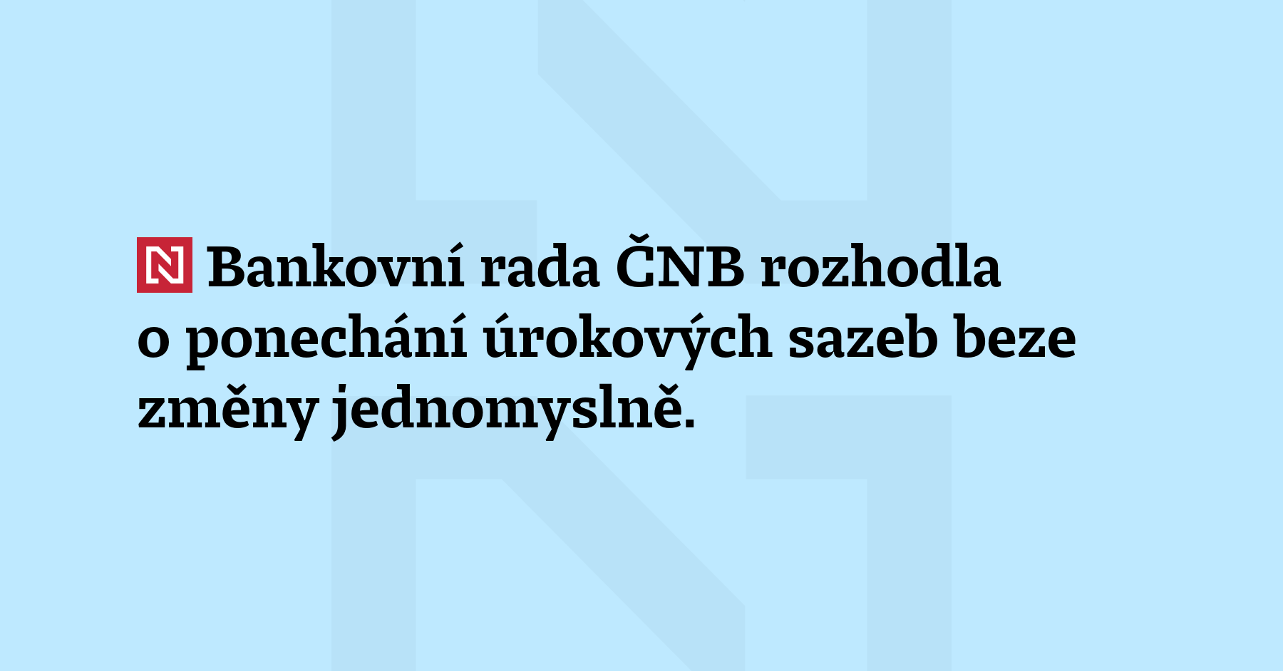 Bankovní rada ČNB rozhodla o ponechání úrokových sazeb beze změny jednomyslně. S prognózou je konzistentní stabilita sazeb v prvním pololetí. (ČTK)