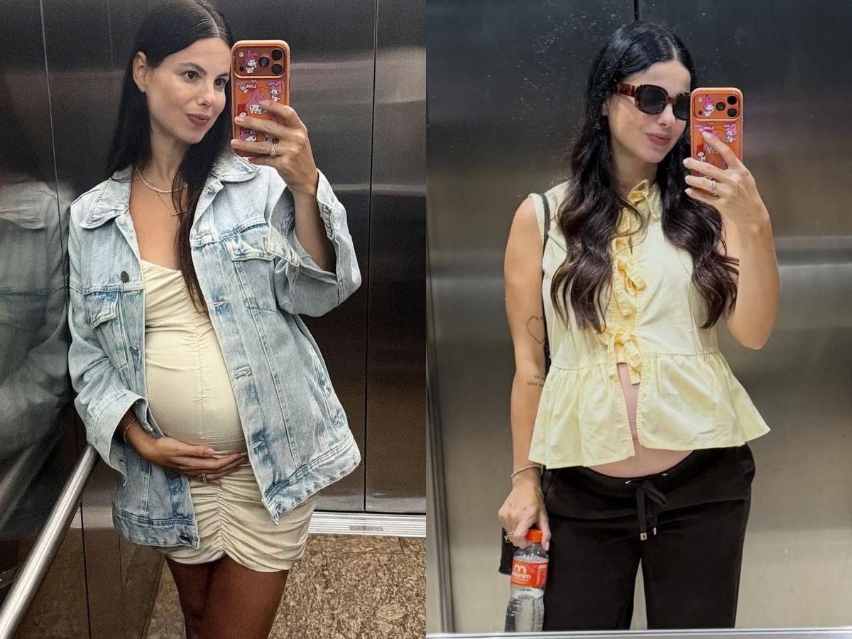 Gravída do terceiro menino, Sthefany Brito surge em selfies no espelho exibindo barrigão