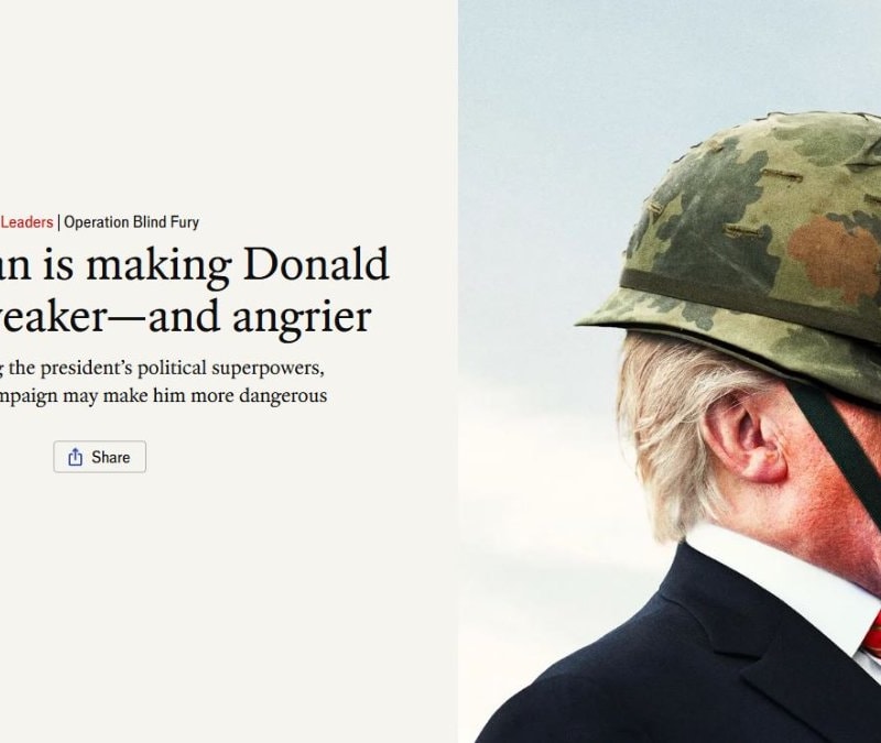 İngiliz dergisi The Economist, Donald Trump'ın İran'a yönelik başlattığı savaşın gözünü kör ettiğini ve kontrolü kaybettiğini ima eden bir kapakla çıktı. Kapakta askeri bir kask Trump'ın gözünü kapatırken "Kör Öfke Operasyonu" başlığı atıldı.