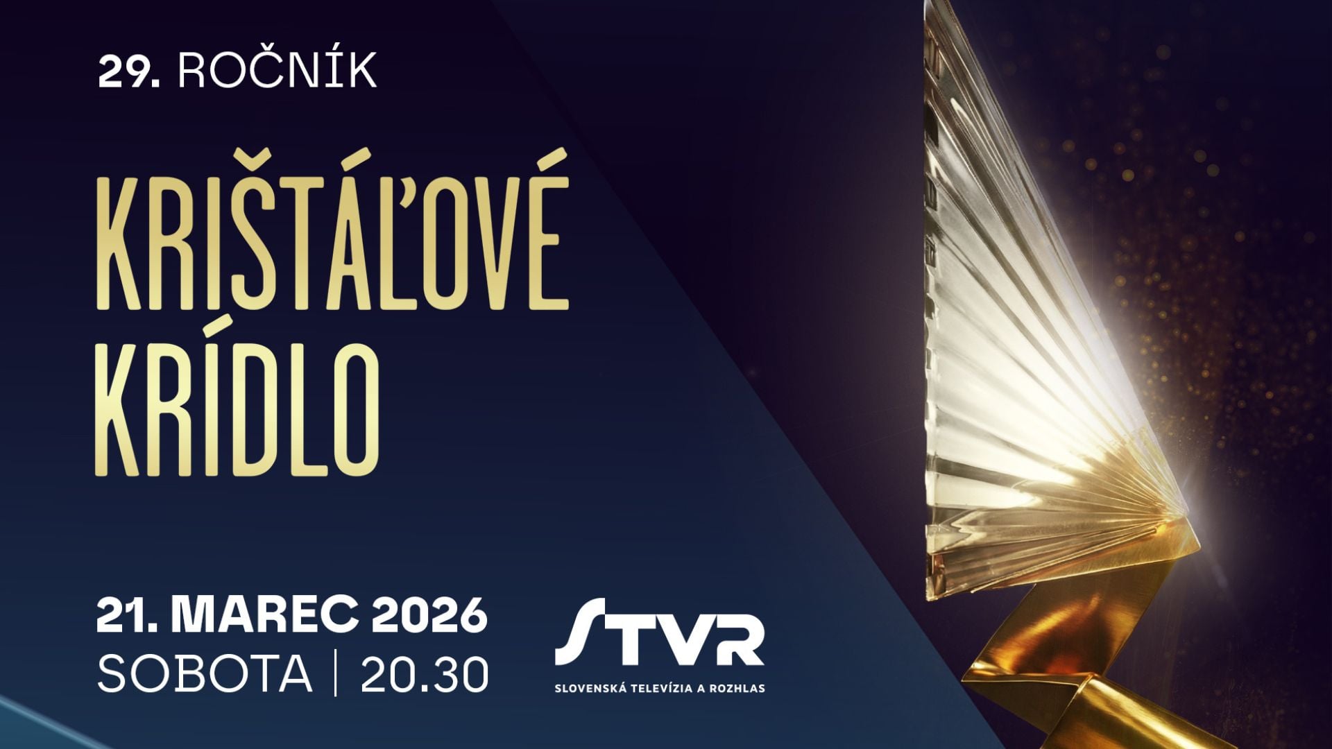 V sobotu, 21. marca 2026, sa v novej budove Slovenského národného divadla uskutoční 29. ročník slávnostného udeľovania cien Krištáľové krídlo. Ocenenie každoročne vzdáva hold výnimočným osobnostiam Slovenska, ktoré svojou prácou, talentom a odhodlaním posúvajú spoločnosť vpred. Priamy prenos galavečera si diváci budú môcť pozrieť o 20:30 na Jednotke STVR. Slávnostným galavečerom budú sprevádzať moderátori Andy Kraus... The post Krištáľové krídlo už túto sobotu prinesie výnimočné príbehy aj hviezdny program appeared first on Startitup.sk .
