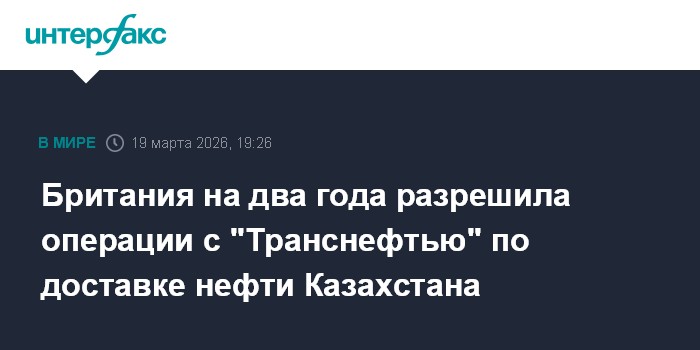 Минфин Великобритании (OFSI) выдал лицензию на осуществление операций с подсанкционой "Транснефтью" по поставке, покупке, транспортировке или доставке нефти Казахстана с 19 марта до 18 марта 2028 года, сообщило ведомство.