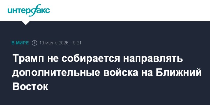 Президент США Дональд Трамп заявил в четверг, что не собирается направлять подкрепления в ближневосточный регион."Я никуда не направляю войска", - сказал Трамп журналистам в Белом доме, отвечая на вопрос о том, требуются ли ему дополнительные силы на Ближнем Востоке в связи с продолжением военной операции против Ирана.