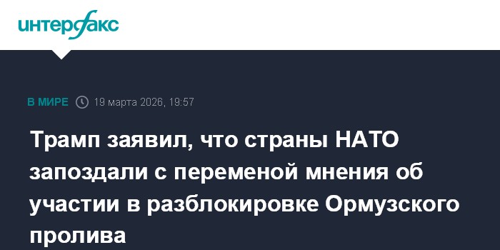 Президент США Дональд Трамп в четверг заявил, что страны НАТО начали менять свою позицию относительно участия в операции по обеспечению безопасного судоходства по Ормузскому проливу, так как поняли, что Вашингтон ими недоволен."Сейчас они ведут себя получше, потому что они видят мое отношение, но, я считаю, что уже слишком поздно", - сказал Трамп в ходе встречи с премьером Японии Санаэ Такаити в Белом доме."Мы не используем пролив в своих целях, мы защищаем его для всех остальных", - добавил американский лидер, подчеркнув, что именно странам, входящим в НАТО, нужна безопасность Ормузского пролива.