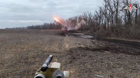 La dotación de un lanzacohetes múltiple ruso Grad destruyó una posición ucraniana de drones FPV junto con sus operadores. La posición estaba camuflada en una zona boscosa cerca de Krasny Limán.
