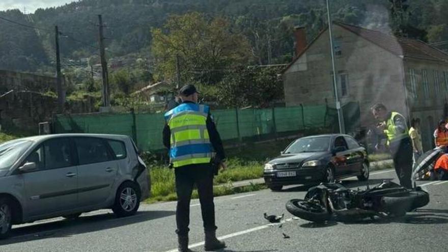 Un motorista resultó herido grave hoy jueves al mediodía en una colisión con un turismo en la carretera N-552 (Vigo-Redondela) a la altura de la parroquia de Cedeira, cerca del centro urbano. El accidente se produjo sobre las 13.30 horas cuando la motocicleta, por causas que investiga la Guardia Civil de Tráfico, impactó contra un turismo Renault Scenic. Todo apunta a que el turismo se incorporó a la vía sin que el motorista pudiera esquivarlo y evitar el impacto.