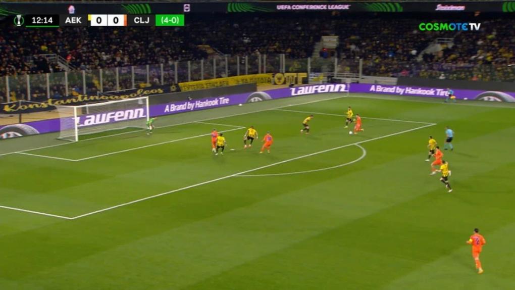 Η Τσέλιε αιφνιδίασε την ΑΕΚ στο 13ο λεπτό με σουτ του Ιοσίφοφ που κόντραρε και στον Μουκουντί για το 0-1 των Σλοβένων!