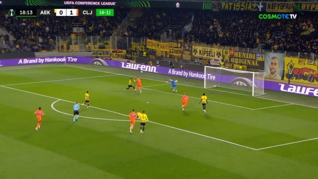 H AEK έφτασε κοντά στην ισοφάριση κόντρα στην Τσέλιε, αλλά το πλασέ του Κουτέσα κόντραρε στον αντίπαλο πορτιέρε και έφυγε κόρνερ!