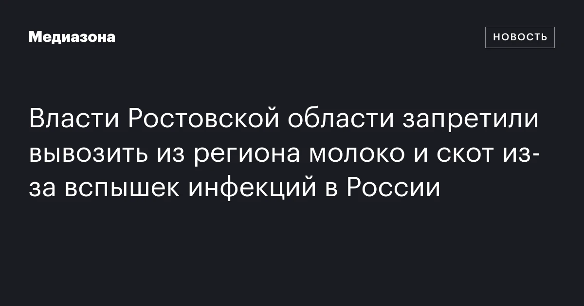 Власти Ростовской области запретили вывозить из региона молоко и скот из‑за вспышек инфекций в России