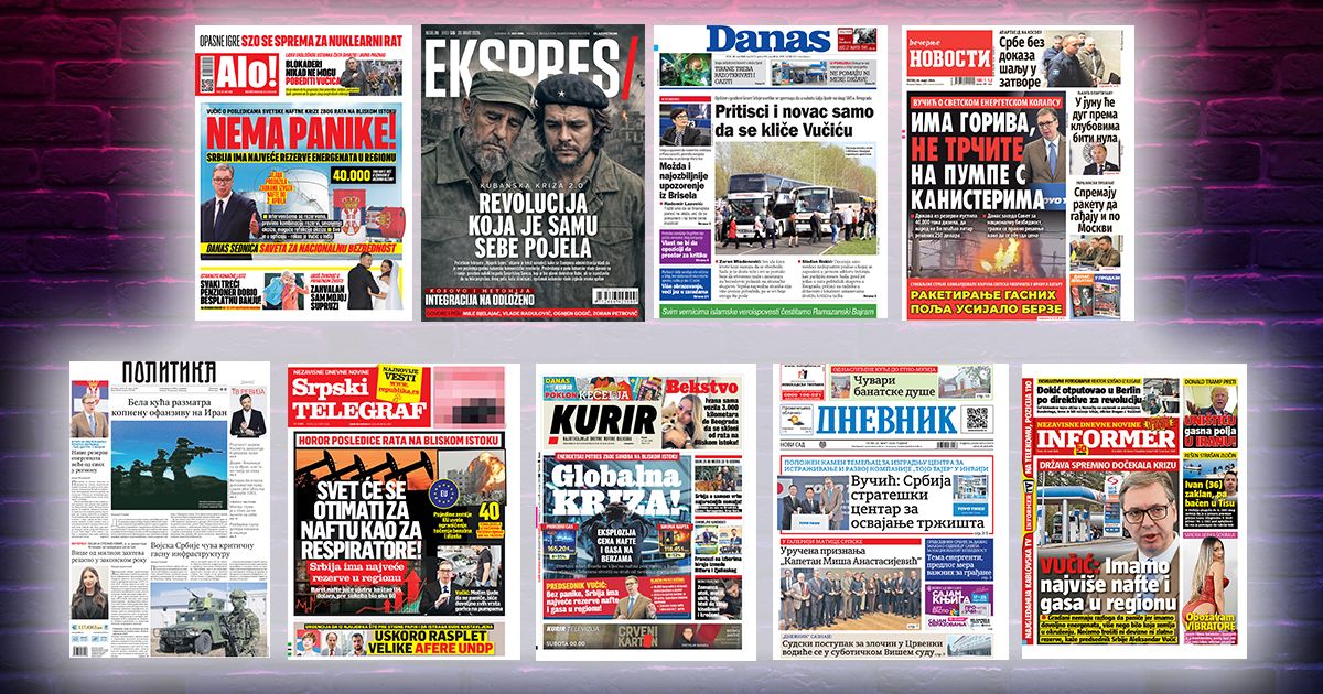 Dnevne novine u Srbiji za petak, 20. mart 2026. godine na naslovnim stranama najavljuju brojne aktuelne društveno-političke teme i donose ekskluzivne priče.