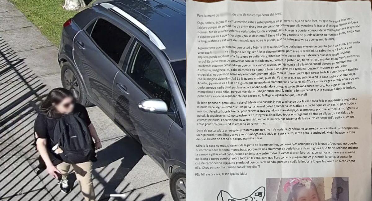 Una madre recibió una indignante carta en Talcahuano en la que se insultaban y amenazaban a su hija con Síndrome de Down. La apoderada hizo la denuncia a través de sus redes sociales, acusando las discriminaciones que sufre su hija en el liceo. The post Madre de menor con Síndrome de Down en denuncia discriminación tras recibir una carta con amenazas y mensajes de odio contra su hija appeared first on The Clinic .