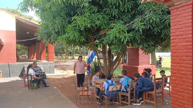 Sin respuesta del MEC: alumnos dan clases bajo árboles tras el derrumbe del techo de una escuela en Caaguazú