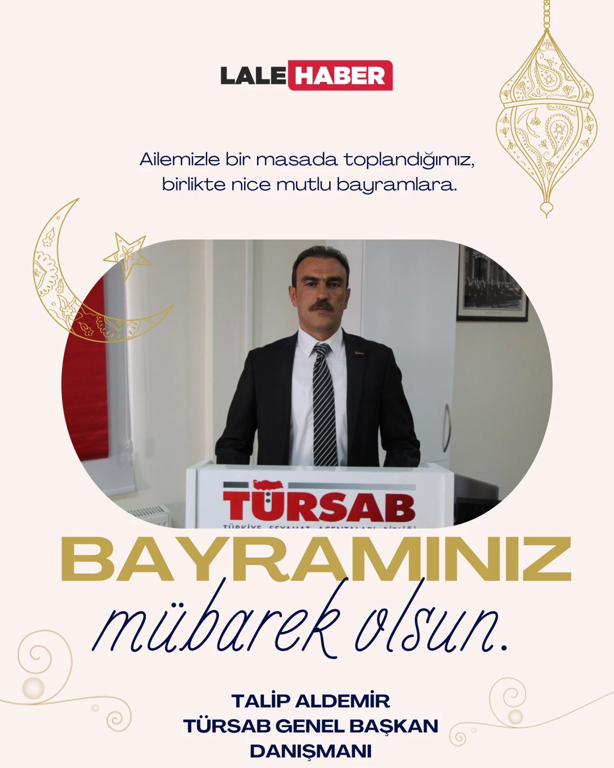 Türkiye Seyahat Acenteleri Birliği (TÜRSAB) Yönetim Kurulu Başkan Danışmanı Talip Aldemir, Mübarek ramazan ayını manevi bereketler içinde tamamlamayı nasip eden Rabb’imize şükürler olsun. Bütün milletimizin ve tüm İslam âleminin Ramazan bayramını en içten dileklerimle kutluyorum dedi.