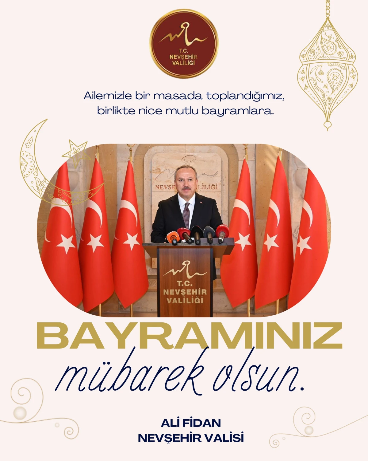 Nevşehir Valisi Ali Fidan, Ramazan Bayramı dolayısıyla yayımladığı mesajda, başta Nevşehirliler olmak üzere tüm İslam âleminin bayramını kutladı. Vali Fidan, bayramların birlik, beraberlik ve dayanışma duygularını pekiştiren müstesna günler olduğunu vurguladı.