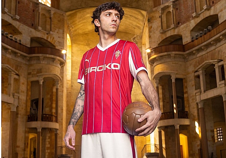 El conjunto gijonés recupera una equipación de principios de los ochenta para usar ante el Burgos, en la jornada que está marcada por la Liga para utilizar diseños antiguos