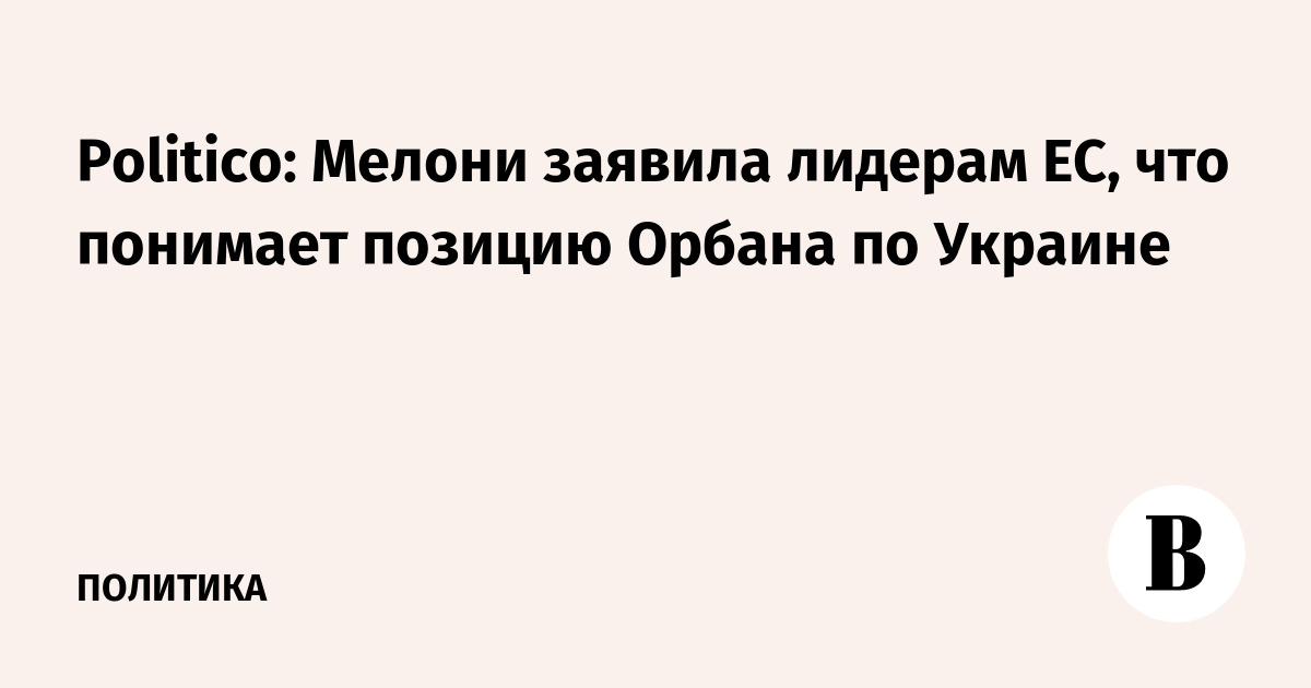 Politico: Мелони заявила лидерам ЕС, что понимает позицию Орбана по Украине