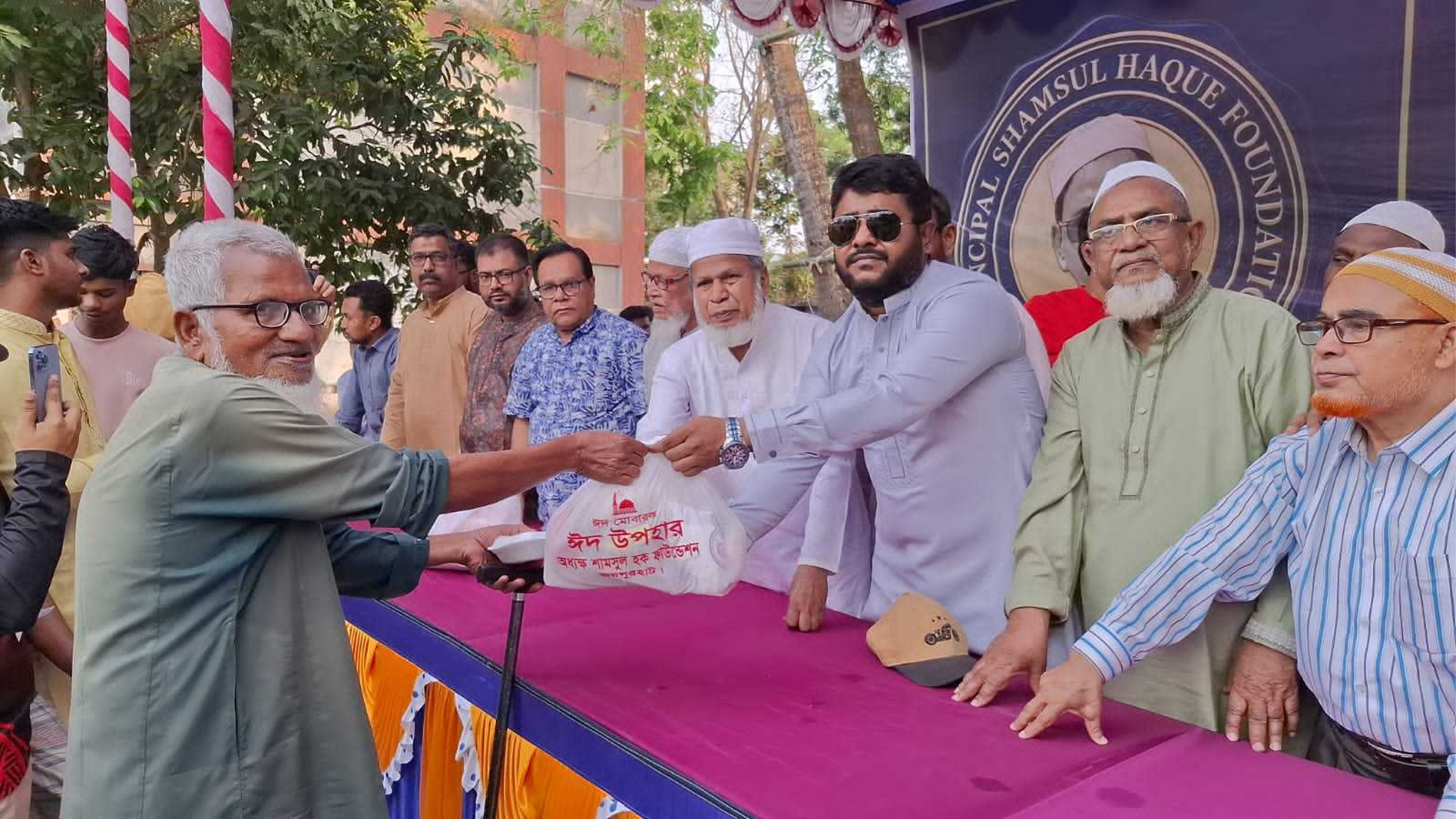 পবিত্র ঈদুল ফিতরের আনন্দ ভাগাভাগি করে নিতে জয়পুরহাটে অসহায় ও হতদরিদ্র মানুষের মাঝে ঈদ উপহার বিতরণ করা হয়েছে।বৃহস্পতিবার (১৯ মার্চ) বিকেলে জয়পুরহাট শহরের রামদেও বাজলা সরকারি স্কুল বিদ্যালয় মাঠে অধ্যক্ষ শামসুল হক ফাউন্ডেশনের পক্ষ থেকে এ উপহার বিতরণ করা হয়।জেলা বিএনপির সাবেক আহ্বায়ক প্রয়াত অধ্যক্ষ শামছুল হকের ছেলে ও জেলা যুব দলের সদস্য সচিব মোক্তাদুল হক আদনান অসচ্ছল পরিবারের সদস্যদের হাতে ঈদ সামগ্রী তুলে দেন। এসব সামগ্রীর মধ্যে ছিল বিরানীর চাল, আটা, চিনি, সেমাই, তেল ও গুড়া দুধ।ঈদ সামগ্রী পেয়ে সবুজ নগর মহল্লার মালেকা বানু, সরদার পাড়া মহল্লার আলেয়া বেগম, শান্তি নগর মহল্লার আসলাম হোসেন, বুলু পাড়া মহল্লার আব্দুল মতিন সন্তুষ্টি প্রকাশ করেন।এ সময় জয়পুরহাট সরকারি কলেজের সাবেক অধ্যক্ষ আব্দুল মজিদ, রেড ক্রিসেন্ট সোসাইটি জয়পুরহাট ইউনিটের সহ সভাপতি ও জেলা বিএনপির আহ্বায়ক কমিটির সদস্য মতিউর রহমান, জেলা যুবদলের আহ্বায়ক এটিএম শাহনেওয়াজ কবির শুভ্র, যুগ্ম আহ্বায়ক শরিফুল ইসলাম, সাবেক কোষাধ্যক্ষ রাশেদুজ্জামান রাশেদ, উত্তর মহানগর স্বেচ্ছাসেবক দলের সিনিয়র যুগ্ম আহ্বায়ক রুহুল আমিন সোহেল, জাতীয়তাবাদী আইনজীবী ফোরামের সভাপতি অ্যাডভোকেট এটিএম মিজানুর রহমান, জেলা শ্রমিক দলের সহ-সভাপতি নাজমুল হোসেন, সদর উপজেলা বিএনপির সাংগঠনিক সম্পাদক মোস্তাফিজুর রহমান, সদর উপজেলা পরিষদের সাবেক ভাইস চেয়ারম্যান তিতাস মোস্তফা, বম্বু ইউনিয়ন বিএনপির সভাপতি ফিরোজ মণ্ডলসহ অন্যরা উপস্থিত ছিলেন।আরও পড়ুন: চাঁদপুরে ছিন্নমূলদের মাঝে প্রধানমন্ত্রীর ঈদ উপহার বিতরণজেলা বিএনপির সাবেক আহ্বায়ক প্রয়াত অধ্যক্ষ শামছুল হকের ছেলে ও জেলা যুব দলের সদস্য সচিব মোক্তাদুল হক আদনান বলেন, ‘বিএনপির ভারপ্রাপ্ত চেয়ারম্যান ও প্রধানমন্ত্রী তারেক রহমানের নির্দেশনায় করোনা সময়কাল থেকেই আমরা জয়পুরহাটের সাধারণ মানুষের পাশে দাঁড়িয়েছি। নতুন বাংলাদেশ বিনির্মাণের যে স্বপ্ন ও ৩১ দফার রূপরেখা তিনি দিয়েছেন, তার আলোকেই আমাদের এই কার্যক্রম অব্যাহত রয়েছে। ঈদের আনন্দ ভাগাভাগি করে নিতে প্রথম এ বছর আমরা এমন আয়োজন করি। এছাড়া একটি আধুনিক ও মানবিক সমাজ বিনির্মাণে আমাদের ফাউন্ডেশন শিক্ষা বিস্তার, চিকিৎসা সেবা প্রদান ও সামাজিক উন্নয়নসহ মানবিক সব সেক্টরে এখন থেকে কাজ করে যাবো।’