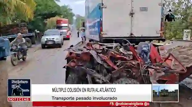 Nuevamente el transporte pesado involucrado en múltiple accidente que por causas desconocidas se registró en el kilómetro 308 de la carretera al Atlántico, en jurisdicción de Livingston, Izabal. Se sabe de una persona atrapada en el vehículo rojo mientras Socorristas asisten a los demás heridos. La colisión múltiple entre cuatro vehículos mantiene obstruido el carril […] The post Múltiple colisión en ruta al atlántico, transporte pesado involucrado appeared first on vigilante .