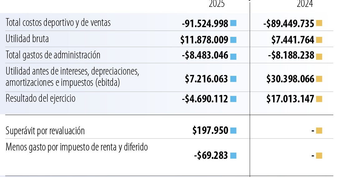 De acuerdo con la entidad, en 2025 el equipo de fútbol capitalino registró pérdidas por $4.690 millones en sus operaciones