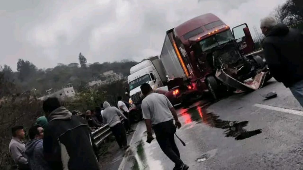 Accidente entre dos tráileres y un auto mantiene cerrada la autopista Acatzingo-Ciudad Mendoza hoy jueves; autoridades trabajan en el retiro de las unidades.
