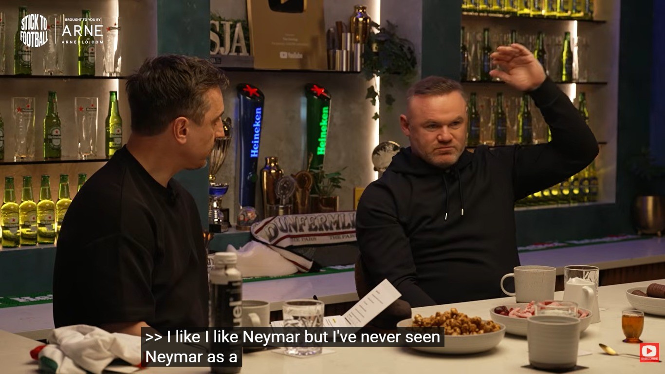 Lendário atacante da Inglaterra e do Manchester United, Wayne Rooney comentou não ver Neymar como um jogador de elite, da mesma prateleira que o argentino Lionel Messi e o português Cristiano Ronaldo. A fala do jogador ocorreu no podcast Stick to Football , do canal no Youtube Overlap, que foi divulgado nesta quarta-feira. O programa é conduzido com perguntas polêmicas para que os participantes deem suas opiniões impopulares. Perguntado se haveria algum jogador na história da Premier League melhor que o Neymar no auge, Rooney respondeu: — Eu gosto do Neymar, mas nunca o vi como um jogador de elite, como no nível de Messi e Cristiano Ronaldo, nesta categoria. O craque inglês também ressaltou na resposta que Salah, do Liverpool, seria um jogador melhor do que o brasileiro — embora a opinião não tenha sido consensual na mesa de debate, que também era composta pelos também ex-jogadores Gary Neville, Roy Keane e Ian Wright, e a ex-jogadora Jill Scott. Em outra opinião impopular, o ex-atacante inglês criticou a Copa do Mundo da África do Sul, ao ser perguntado sobre a expectativa para o Mundial com três sedes, e Rooney foi categórico em dizer: "você não conseguiria ter algo pior que na África do Sul". — Estávamos viajando para o jogo contra os Estados Unidos, o primeiro jogo. Enquanto dirigíamos para o estádio, estava completamente escuro, não havia torcedores lá — disse Rooney. — A forma como normalmente os torcedores os recebem, não aconteceu nada disso. Simplesmente não parecia uma Copa do Mundo.