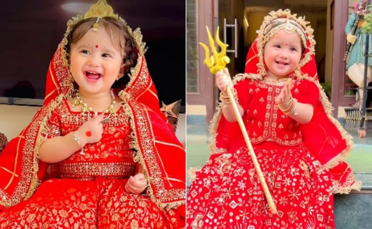 नवरात्रि पर छोटी बच्ची बनी मां दुर्गा, क्यूट एक्सप्रेशन ने जीता सबका दिल