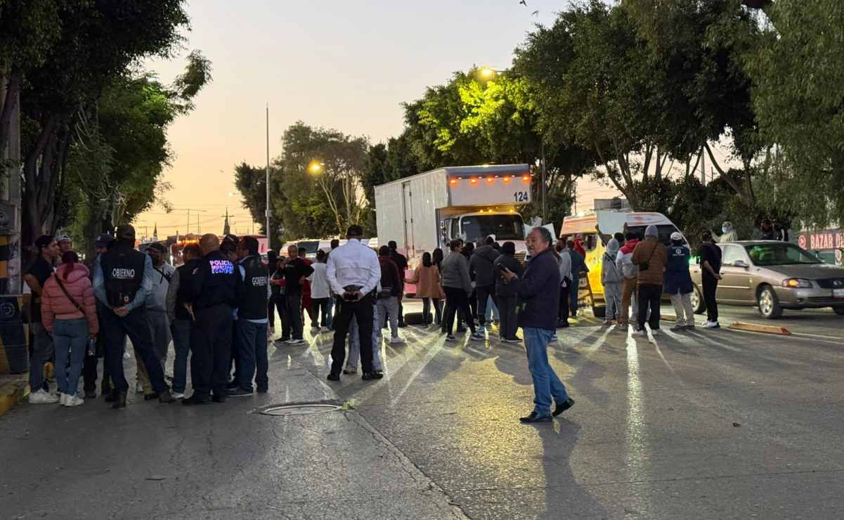 Un grupo de personas bloquea la Vía José López Portillo, a la altura de la estación DIF del Mexibús Línea 2, en Ecatepec