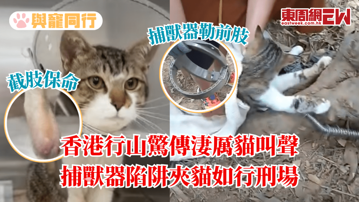 市民在行山期間,驚聞後山傳出淒厲無比的貓叫聲,驚見一隻貓貓正被捕獸器死死勒着前肢,貓貓右前肢血流成河。由於右前肢被捕獸器夾至組織壞死、傷口潰爛見骨,為了保住性命,獸醫最終為牠進行截肢手術。事件再次揭示本港郊野陷阱處處,法律阻嚇力形同虛設,令無辜生命隨時踏上不歸路。 這隻被捕獸器死死勒着前肢的貓貓名為「初六」,牠不幸誤踏後山的捕獸器。貓貓當時十分驚慌,被鎖住的爪亦流血成河,當為貓貓解開捕獸器時,貓貓