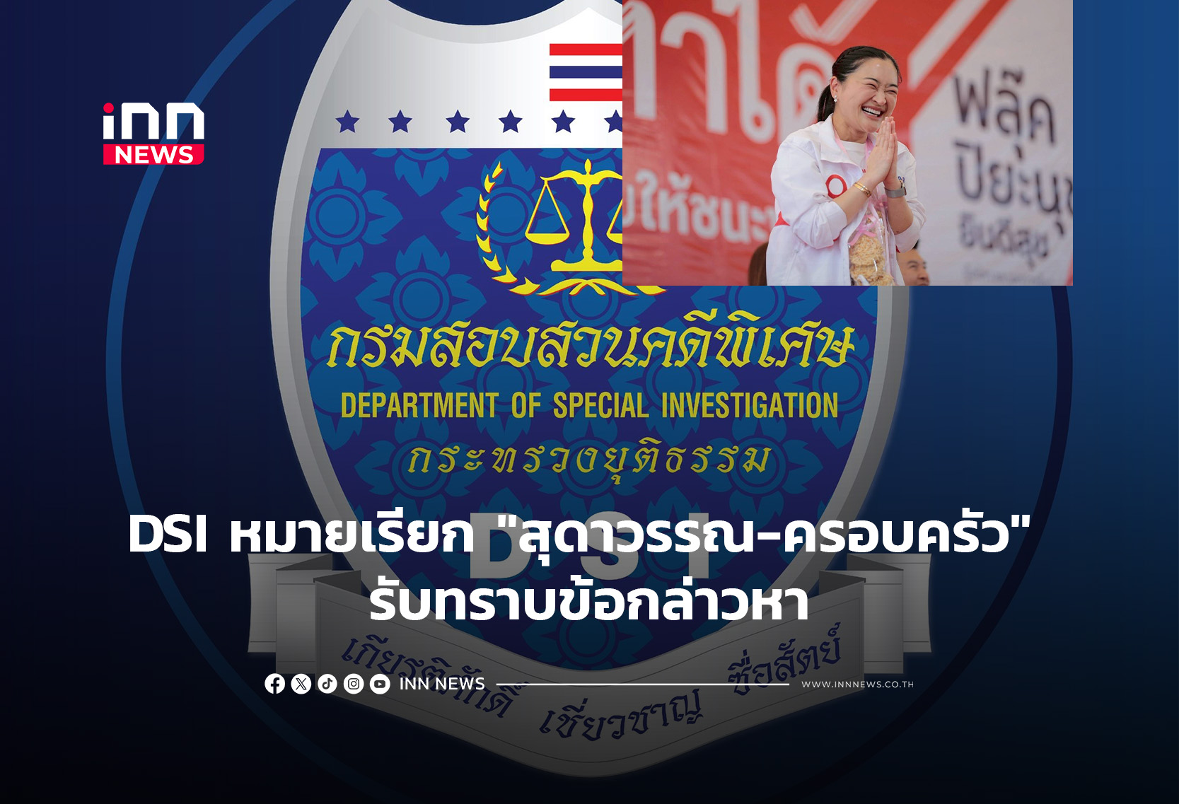 DSI หมายเรียก “สุดาวรรณ-ครอบครัว” รับทราบข้อกล่าวหา