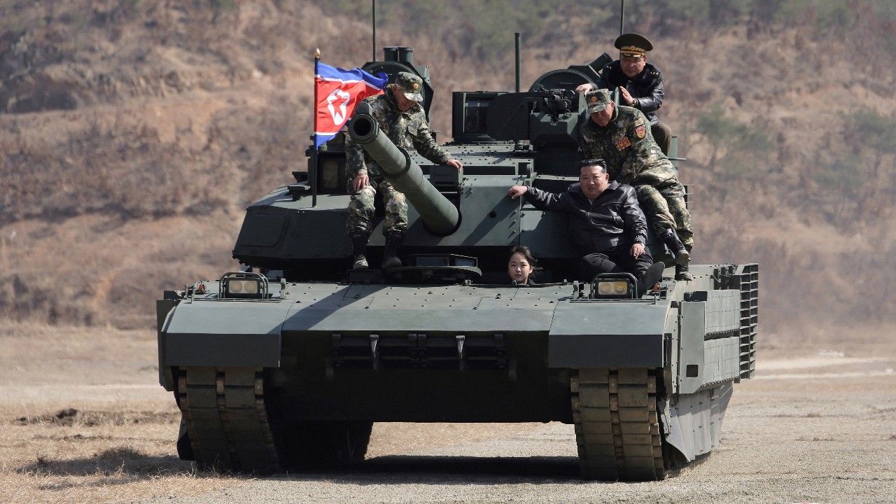 ผู้นำสูงสุดเกาหลีเหนือควง "คิม จูแอ" ลูกสาวคนโปรดปรากฏตัวต่อสาธารณชนอีกครั้งในมาดเข้ม สวมแจ็คเก็ตหนังนั่งรถถังตรวจเยี่ยมการซ้อมรบทางทหาร พร้อมสั่งการกองทัพเตรียมพร้อมทำสงครามขั้นสูงสุด