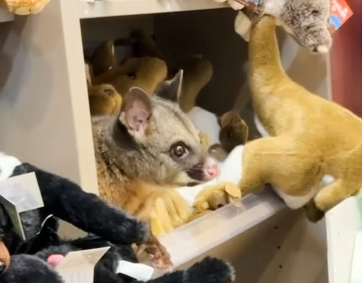 נוסעים בשדה התעופה של טסמניה באוסטרליה הופתעו לגלות במדף הבובות הפרוותיות בחנות המתנות אורח חמוד במיוחד: "הוא רצה להשתלב"
