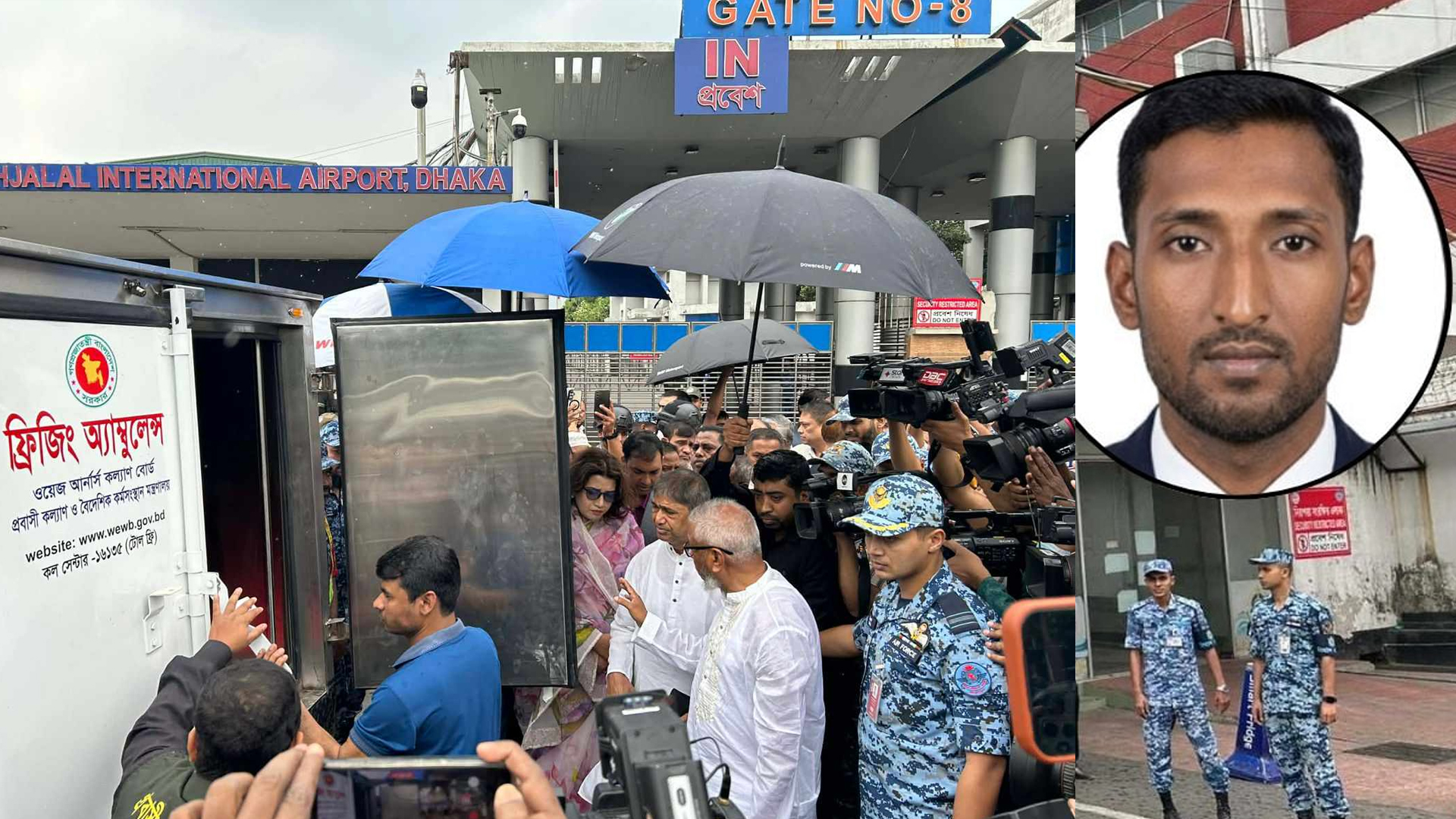 বিমানবন্দরে প্রবাসীকল্যাণ ও বৈদেশিক কর্মসংস্থান মন্ত্রী আরিফুল হক চৌধুরী বলেন, সৌদি আরবে ইরানের মিসাইলের আঘাতে নিহত মোশাররফ হোসেনের দুই সন্তানের শিক্ষা খরচ চালাবে সরকার। যুদ্ধকালীনে প্রবাসীদের পাশে থাকবে সরকার।শুক্রবার (২০ মার্চ) বিমানবন্দরে মোশাররফের মরদেহ গ্রহণ করে সাংবাদিকদের এ কথা বলেন তিনি। সকাল ১০টা ৫০ মিনিটের দিকে মোশাররফের মরদেহ বহনকারী সৌদি এয়ারলাইনসের একটি ফ্লাইট (এসভি ৮০৬) হযরত শাহজালাল আন্তর্জাতিক বিমানবন্দরে অবতরণ করে। সৌদি আরবের আল-খারিজ শহরের কাছে আল-তোয়াইক এলাকায় ইরানের ক্ষেপণাস্ত্র হামলায় নিহত হন প্রবাসী বাংলাদেশি মোশাররফ হোসেন। মরদেহ গ্রহণ করে বিমানবন্দরে প্রবাসীকল্যাণ ও বৈদেশিক কর্মসংস্থান মন্ত্রী আরিফুল হক চৌধুরী বলেন, সৌদি আরবে মিসাইলের আঘাতে নিহত মোশাররফ হোসেনের দুই সন্তানের শিক্ষা খরচ চালাবে সরকার। যুদ্ধকালীনে প্রবাসীদের পাশে থাকবে সরকার উপস্থিতিতে মোশারফ হোসেনের মরদেহ গ্রহণ করে তার পরিবার। এ সময় পররাষ্ট্র প্রতিমন্ত্রী শামা ওবায়েদ ইসলামও উপস্থিত ছিলেন। পররাষ্ট্র প্রতিমন্ত্রী বলেন, যুদ্ধাবস্থাচলা দেশগুলোর মিশন এবং দূতাবাসগুলো সর্তক রয়েছে। আরও পড়ুন: সৌদিতে ক্ষেপণাস্ত্র হামলা: মোশাররফের নিথর দেহ পৌঁছাল দেশে বাংলাদেশ বিমানের স্ট্যার্টার্ড ফ্লাইটে সরকারের খরচে একটি বিমানে ফেরত আসছেন প্রবাসীরা এবং এ প্রক্রিয়া চলমান থাকবে বলেও জানান তিনি। সৌদি আরবের স্থানীয় সময় শুক্রবার সকালে রিয়াদ থেকে সৌদি এয়ারলাইনসের ওই ফ্লাইটে নিহত মোশারফ হোসেনের মরদেহ ঢাকার উদ্দেশে রওনা হয়। নিহত মোশাররফ হোসেনের বাড়ি টাঙ্গাইলের সখীপুরে। তিনি উপজেলার কীর্ত্তনখোলা গ্রামের মো. সুরজত আলীর ছেলে। গত ৮ মার্চ সৌদি আরবে একটি আবাসিক ভবনে ক্ষেপণাস্ত্র হামলায় মোশারফ নিহত হন। ইফতারের ঠিক আগমুহূর্তে চালানো ওই হামলায় মোশারফসহ মোট তিন জন প্রাণ হারান। তার পরিবারের সদস্যরা জানান, জীবিকার সন্ধানে আট বছর আগে সৌদি আরব গিয়েছিলেন মোশাররফ হোসেন। দুই বছর আগে তিনি একবার দেশে এসেছিলেন। এরপর কর্মস্থলে ফিরে যান। মৃত্যুর মাত্র আধা ঘণ্টা আগেও বড় ছেলে মাহিমের সঙ্গে ভিডিও কলে কথা বলেছিলেন তিনি। সেটিই ছিল পরিবারের সঙ্গে তার শেষ আলাপ।