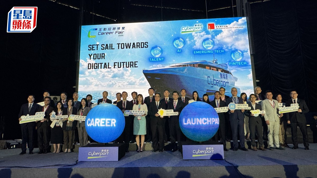 數碼港年度旗艦活動「數碼港互動招聘博覽 2026」今日(20日)在數碼港商場中庭CyberArena揭幕,由數碼港主席陳細明、行政總裁鄭松岩,聯同創新科技及工業局副局長張曼莉、科技創新界立法會議員邱達根等人擔任主禮嘉賓。為期兩天的博覽以「Set Sail Towards Your Digital Future」為主題,提供逾2,000個創科職位,並首次引入無人機足球比賽等多元互動體驗,讓參加者全面