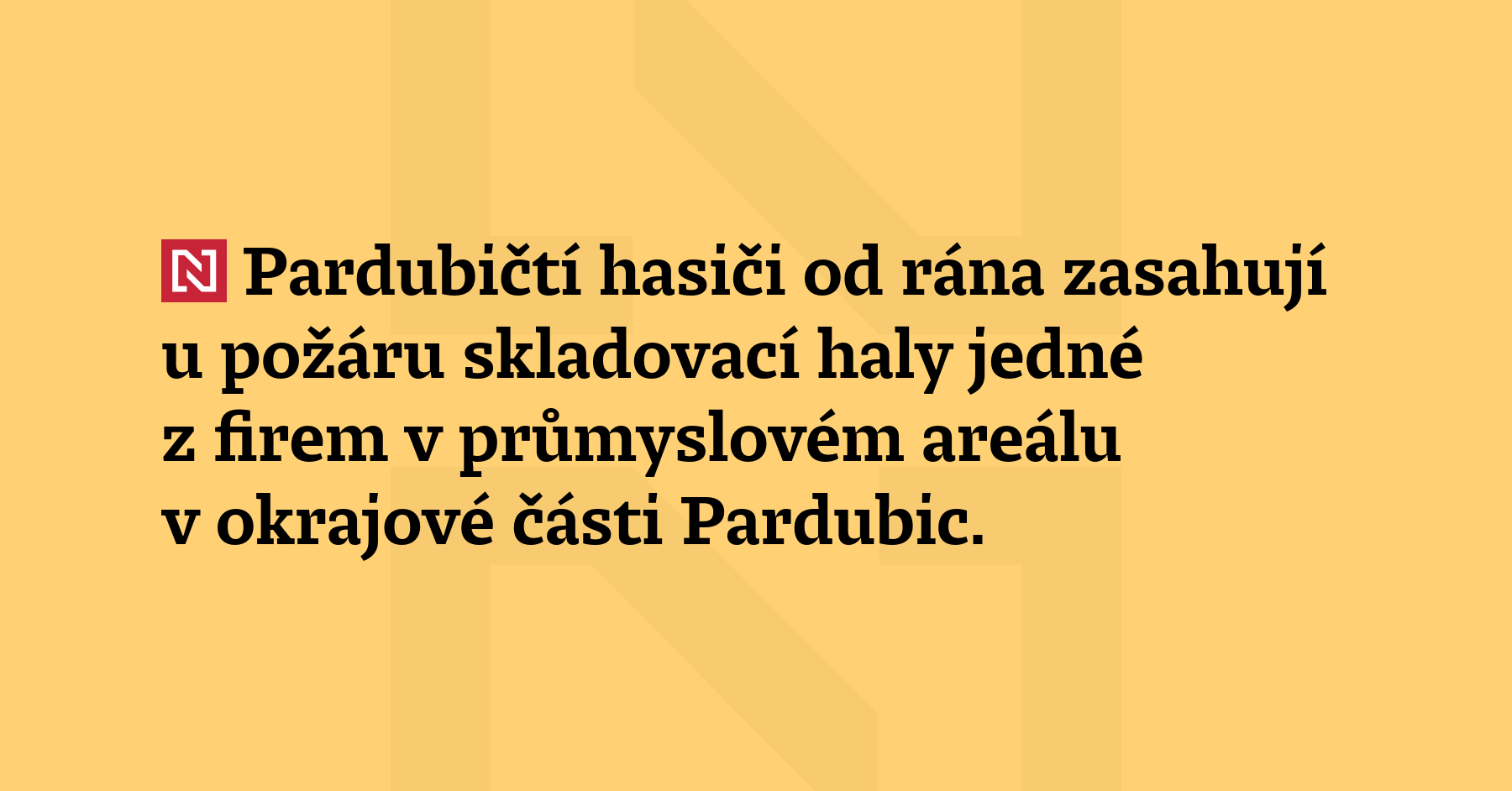 Pardubičtí hasiči od rána zasahují u požáru skladovací haly jedné z firem v průmyslovém areálu v okrajové části Pardubic. Na místě je deset hasičských jednotek, zasažena byla i vedlejší administrativní budova. (Novinky)