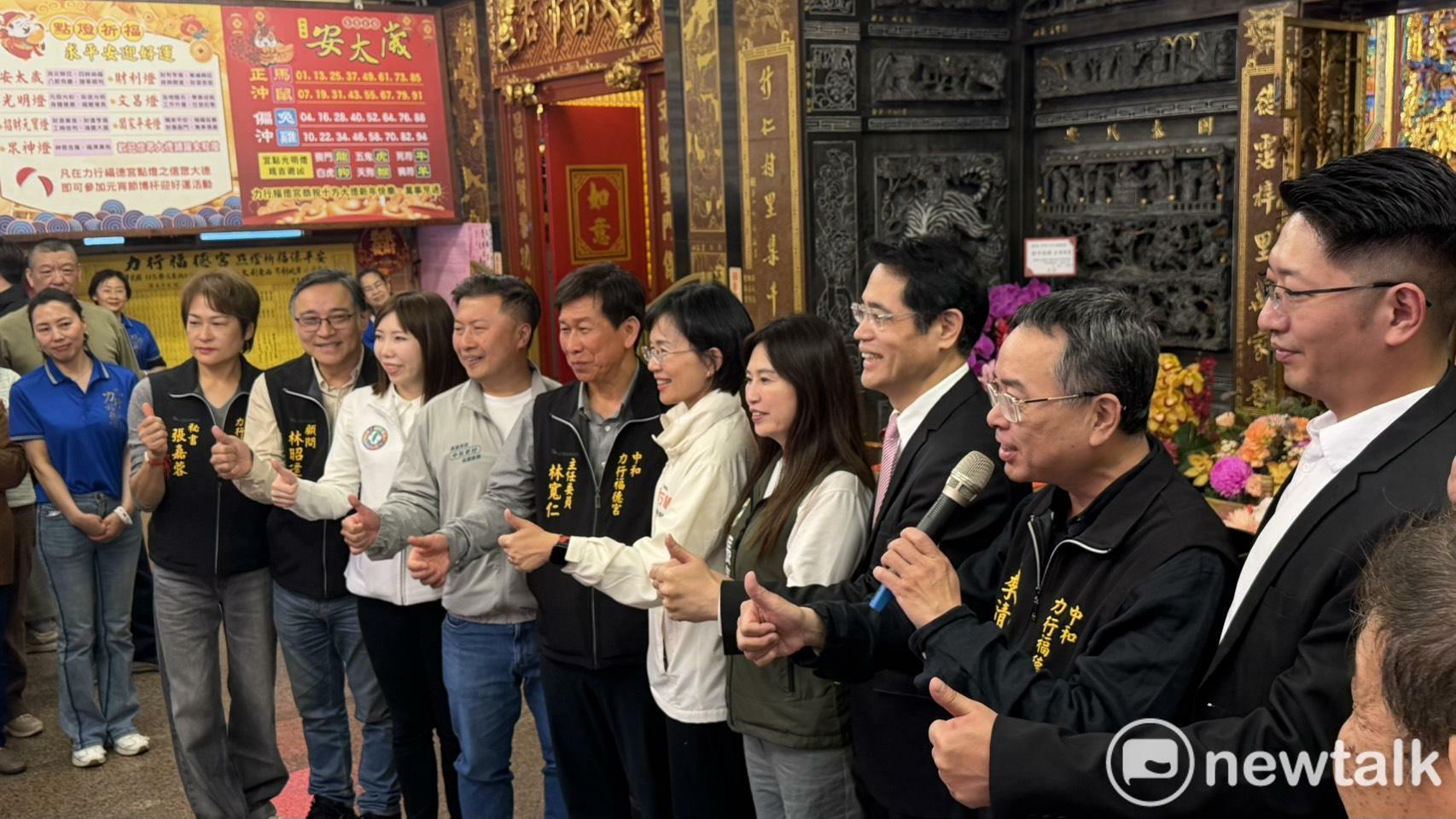 Newtalk新聞 今(20)日為農曆二月初二福德正神聖誕,民進黨新北市長參選人、立委蘇巧慧連跑新北多間宮廟衝刺選情。其中,在中和力行福德宮時,奧運羽球金牌、運動部部長李洋的母親林莉娟更特別出席獻上「金牌高粱」,祝蘇能夠「旗開得勝奪金牌」。黨內人士表示,蘇巧慧支持度不斷向上,更與國民黨新北市長參選人李四川平起平坐,在母雞的帶動下,民進黨中和區3席議員全上不是不可能。 蘇巧慧今先後前往五股洲子洋福德祠、中和力行福德宮等宮廟參與團拜儀式,傍晚將再前往新北其他土地公廟,祈求地方平安順遂。在中和力行福德宮現場,李洋的母親林莉娟女士更特別出席,為蘇巧慧致贈「金牌高粱」,預祝「一馬當先」、「旗開得勝奪金牌」。廟埕湧入破百位民眾為蘇加油打氣,並高喊凍蒜、加油,場面十分熱烈。 蘇巧慧赴中和力行福德宮,包括前立委江永昌(右三),新北市議員張維倩(左三)、張嘉玲(右四),議員參選人張志豪(左四)等人出席。 圖:高逸帆/攝 蘇巧慧表示,中和力行福德宮是地方重要的信仰中心,長年投入公益、行善不落人後。她說,今日適逢「土地公生」,特別來到現場與鄉親一同祈福,感受地方的熱情與活力。包括前立委江永昌,新北市議員張維倩、張嘉玲,議員參選人張志豪,及多位在地里長皆全程陪同,展現新北隊團結氣勢。 力行福德宮主委林寬仁表示,李洋從小在附近長大,與地方淵源深厚。他說,李的母親林莉娟得知蘇巧慧要來,特別贈送李洋聯名的「金牌高粱」,祝福蘇「一馬當先」、「馬到成功」,贏得新北市長選舉。 目前中和區議員分布為國民黨4席,包括金瑞龍、陳錦錠、邱烽堯、游輝宂;民進黨2席,包括張維倩、張嘉玲。2026選戰國民黨4席議員預計競選連任;民進黨則有2席議員,再加上張志豪捲土重來;至於民眾黨則推派民眾黨主席黃國昌的中永和區主任陳怡君參選。 黨內人士分析,在目前蘇巧慧支持度節節上升的情況下,已經打平李四川。未來可望在母雞的氣勢下,成功帶領3席小雞議員全上。此外,該人士也說,另個關鍵點則是民眾黨能夠拿到多少票,若陳怡君夠強勢拿到1萬多票,就可能分掉國民黨的票源,進而使得藍營掉一席,而綠營則3席全拿。整體仍要觀測後續選戰動向而定。 延伸閱讀: 宜蘭縣長就算藍白合民調也輸! 吳宗憲:祝林國漳跑行程一切平安 面對譴責不退讓 劉世芳堅持:李貞秀不具立委資格、不會接受質詢 拒譴責中國卻猛打台灣官員 林宜瑾轟藍白:替中國打法律戰 「5藍縣市」危險!他曝2關鍵:藍營正在無痛失血!還在喊32:0一路爽下去? 李四川「校校有公托」新北早在做? 藍選將諷蘇巧慧「蘇不起」