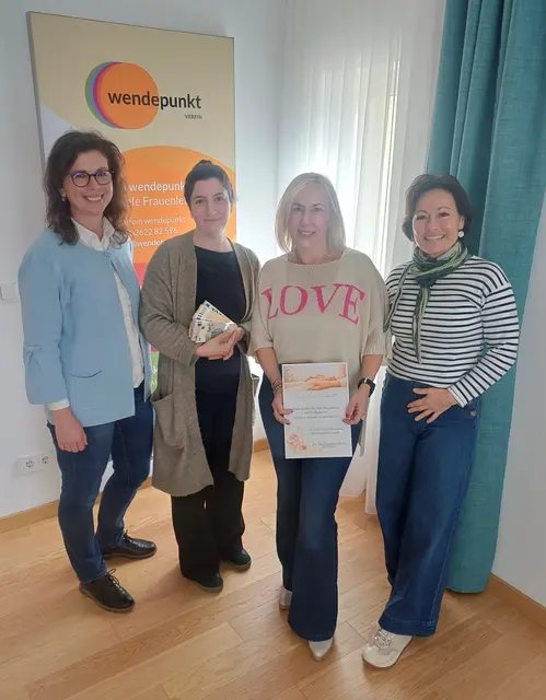 Spendenübergabe der Frauenkleidertauschparty: Der Wiener Neustädter Verein Wendepunkt erhält 475 Euro von der Initiative der Gemeinde Bad Erlach. BAD ERLACH/WIENER NEUSTADT. Im Rahmen der Frauenkleidertauschparty in Bad Erlach konnte eine Spende in Höhe von 475 Euro gesammelt und nun übergeben werden. Die Initiatorin der Veranstaltung, Orsolya Wrede überreichte gemeinsam mit zwei Teammitgliedern – geschäftsführende Gemeinderätin Andrea Engelschall und Gemeinderätin Traude Kornhofer (beide Team...