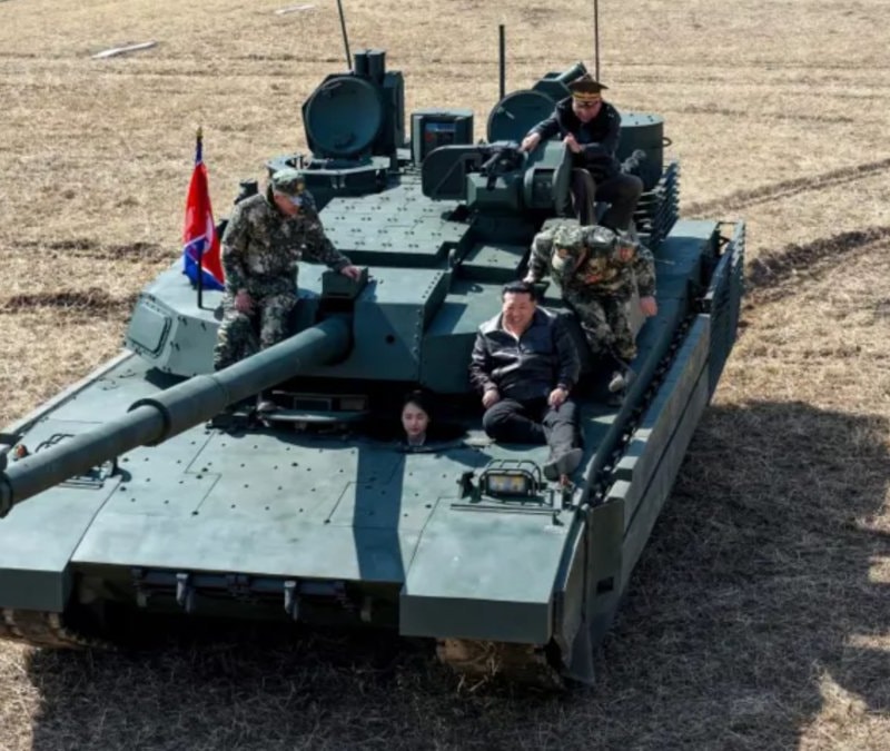 Kuzey Kore lideri Kim Jong Un, kızı Ju Ae ile birlikte ordunun yeni tankını test etti. Kim’in hareket halindeki tankın üzerinde oturduğu, Ju Ae’nin ise tank kapağından başını çıkardığı görüldü.
