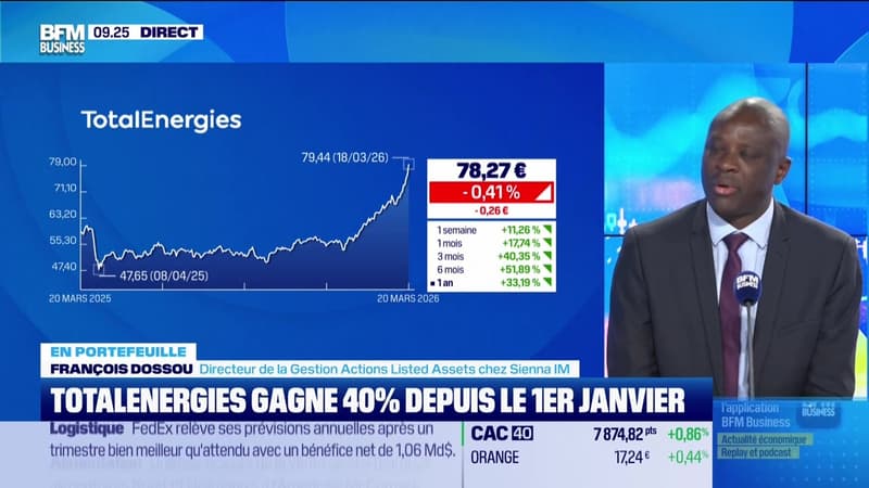 Ce vendredi 20 mars, les valeurs qui ont atteint des records exceptionnels en Bourse, notamment celles des actions de TotalEnergies et d'Accenture, ont été abordées par François Dossou, directeur de la Gestion Actions Listed Assets chez Sienna IM, dans l'émission Good Morning Market sur BFM Business. Retrouvez l'émission du lundi au vendredi et réécoutez la en podcast.