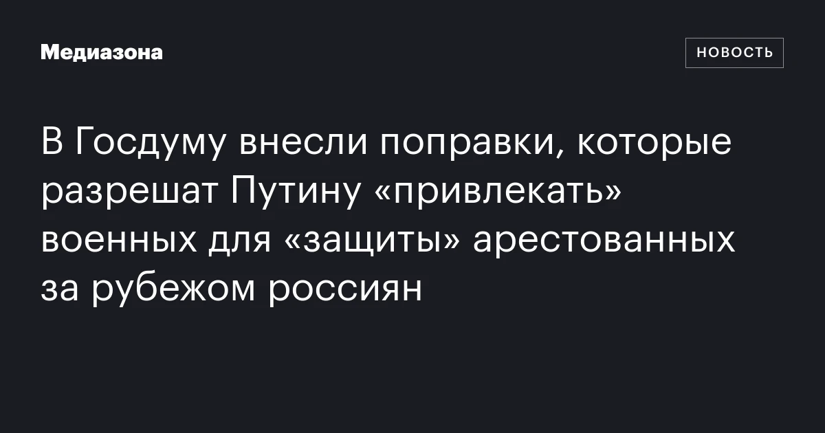 В Госдуму внесли поправки, которые разрешат Путину «привлекать» военных для «защиты» арестованных за рубежом россиян