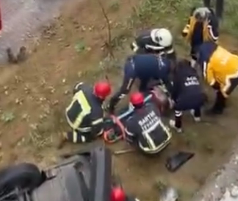 Kentte, otomobil, kayganlaşan yolda istinat duvarını aşarak toprak zemine düştü. Kazada otomobil sürücüsü yaralandı.