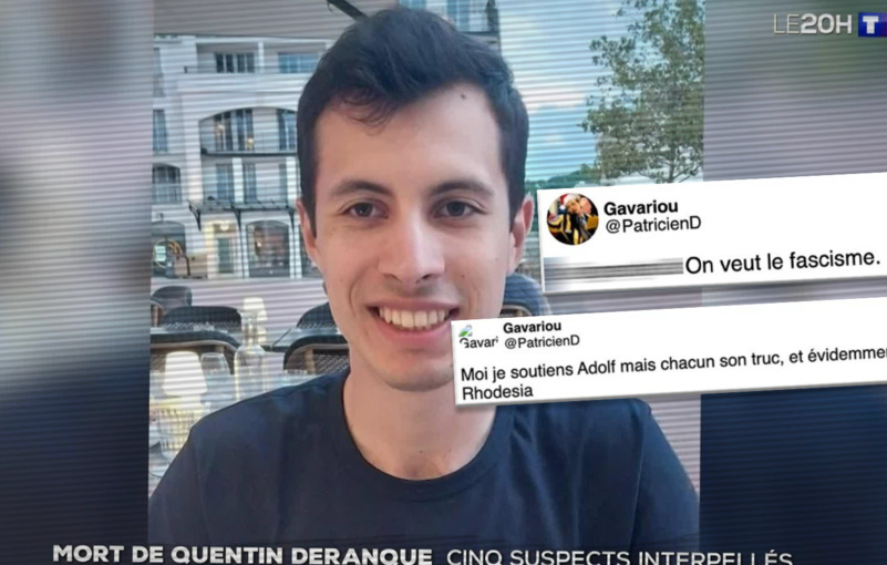 Quentin Deranque postait des messages prônant le fascisme et le nazisme sur les réseaux sociaux, selon une enquête de Mediapart qui a retrouvé ses comptes. Les révélations ont été reprises dans la presse et en ligne, mais très peu à la télé... et pas du tout dans les JT. Tour d'horizon.