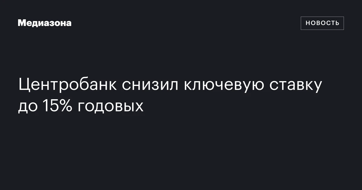 Центробанк снизил ключевую ставку до 15% годовых