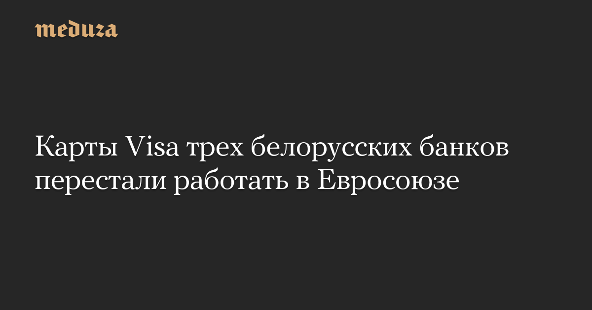 Выпущенные белорусскими Альфа-банком, Белгазпромбанком и Белагропромбанком карты Visa перестал работать в странах Евросоюза. Об этом сообщает «Зеркало» со ссылкой на заявление банков.