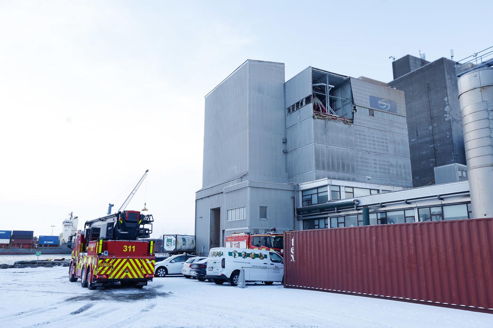 Bygging Fóðurblöndunnar var hönnuð til að gefa eftir í sprengingu, að sögn Jóns Kristins Valssonar, varðstjóra hjá slökkviliði höfuðborgarsvæðisins. Sprenging varð þar um klukkan hálfátta í morgun.