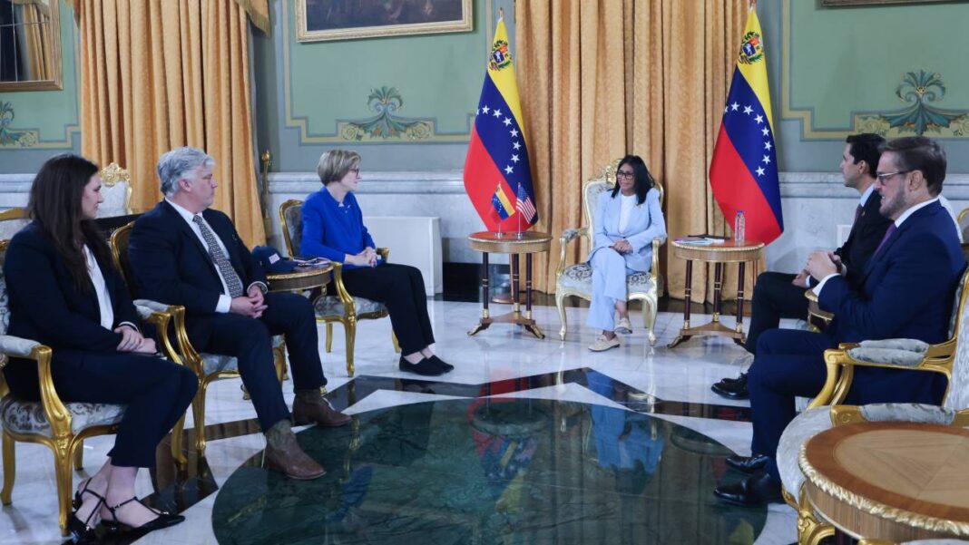 La presidenta encargada de la República, Delcy Rodríguez, se reunió la tarde de este jueves con integrantes del Comité de Relaciones Exteriores del Senado estadounidense. El canal del Estado transmitió imágenes del encuentro que se realizó en el Palacio de Miraflores. Integrantes de esta delegación, junto a la encargada de engocios de EEUU, Laura Dogu, […] La entrada Presidenta (e) Delcy Rodríguez recibió integrantes del Comité de Relaciones Exteriores del Senado de EEUU se publicó primero en El Aragueño .