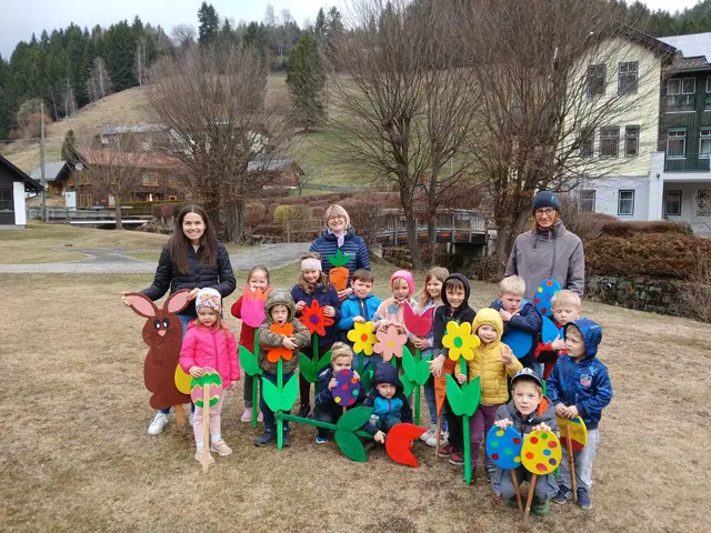 Rechtzeitig zum Frühlingsbeginn entstanden im Kindergarten Deutsch-Griffen farbenfrohe Meisterwerke. DEUTSCH-GRIFFEN. Gemeinsam mit den Betreuerinnen wurden Blumen, Schmetterlinge und Ostereier bemalt, die im Ort aufgestellt wurden, um das Ortsbild ebenso farbenfroh zu gestalten. "Die Kinder hatten jede Menge Spaß beim Malen und wir freuen uns alle über bunte Akzente mit denen wir den Frühling begrüßen", freut sich auch Bürgermeister Michael Reiner.