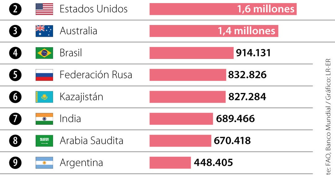 Según el listado, el liderazgo de China responde tanto a su extensión territorial como al peso estructural de la agroindustria dentro de su economía